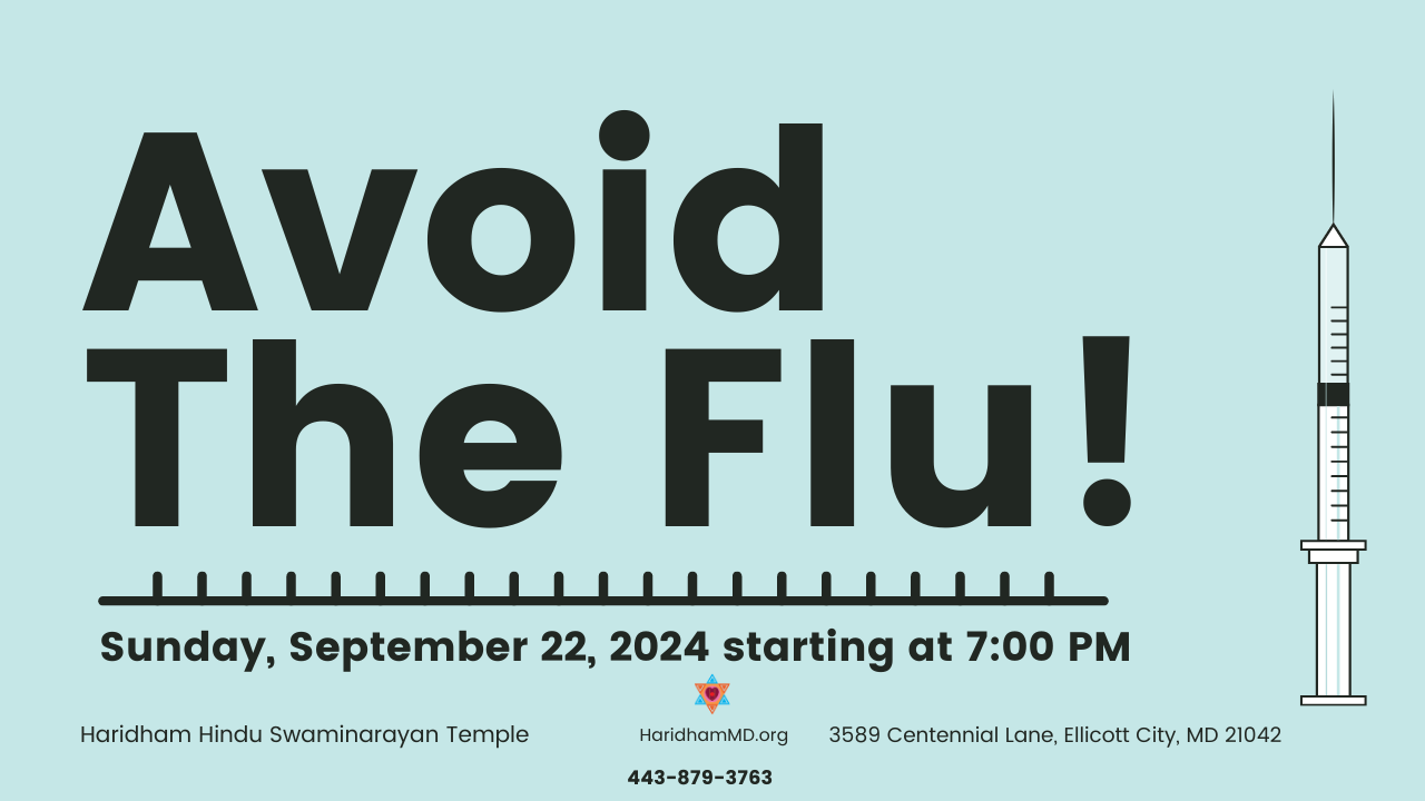 The flu shot will be administered Sunday, September 23, 2024 starting at 7:00 PM.